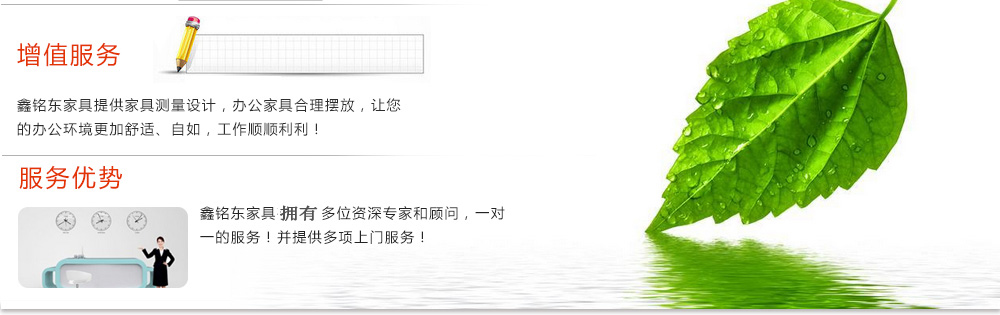 深圳市鑫銘東家具有限公司專業(yè)銷售各類辦公家具!產(chǎn)品涉及多種系列,如:班臺(tái)、班椅、屏風(fēng)、會(huì)議桌、會(huì)議椅、辦公沙發(fā)、茶幾、辦公桌、文件柜、電腦桌椅、各式餐臺(tái)、餐椅、書柜等辦公家具。 鑫銘東家具擁有一批優(yōu)秀的家具設(shè)計(jì)、生產(chǎn)及營(yíng)銷的專業(yè)人士和高素質(zhì)的管理隊(duì)伍。銘東家具以"先難后易"之戰(zhàn)略,在產(chǎn)品結(jié)構(gòu)、產(chǎn)品質(zhì)量及服務(wù)水平方面,均推陳出新,力求完善,精益求精。使我們的產(chǎn)品質(zhì)量保持在國(guó)內(nèi)外家具潮流的先進(jìn)水平,力求滿足客戶的特殊需求。鑫銘東家具多年來致力于環(huán)保、實(shí)用家具的設(shè)計(jì)與開發(fā),集生產(chǎn)、銷售、服務(wù)于一體。本著"以人為本"的設(shè)計(jì)理念,大量開發(fā)符合人體工程學(xué)的各種產(chǎn)品,以"誠(chéng)信為本"的質(zhì)量方針,真材實(shí)料,認(rèn)認(rèn)真真做產(chǎn)品,實(shí)實(shí)在在做人。鑫銘東家具更致力于創(chuàng)造"零維修率"的制造境界,實(shí)現(xiàn)"沒有維修的服務(wù)才是最好服務(wù)"的口號(hào)》了解更多